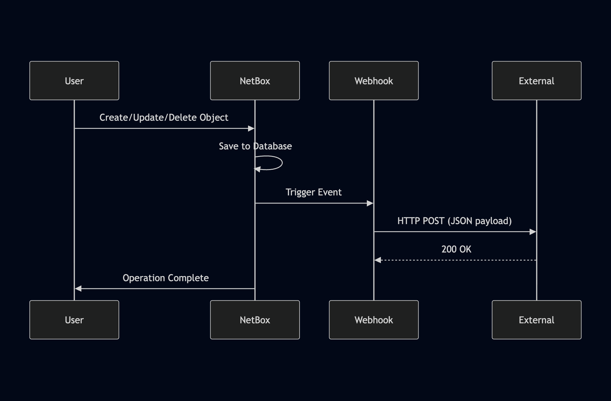 - Automation mechanisms: (webhooks, custom scripts) don’t store data but instead react to NetBox events or perform bulk operations.